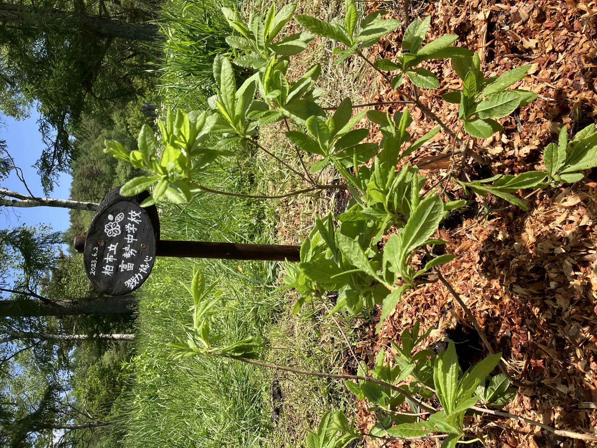 6月3日現在、すでに10本の苗木が、開閉校式を行う緑のテントの周りと、森へ続く道の途中に植えられています。