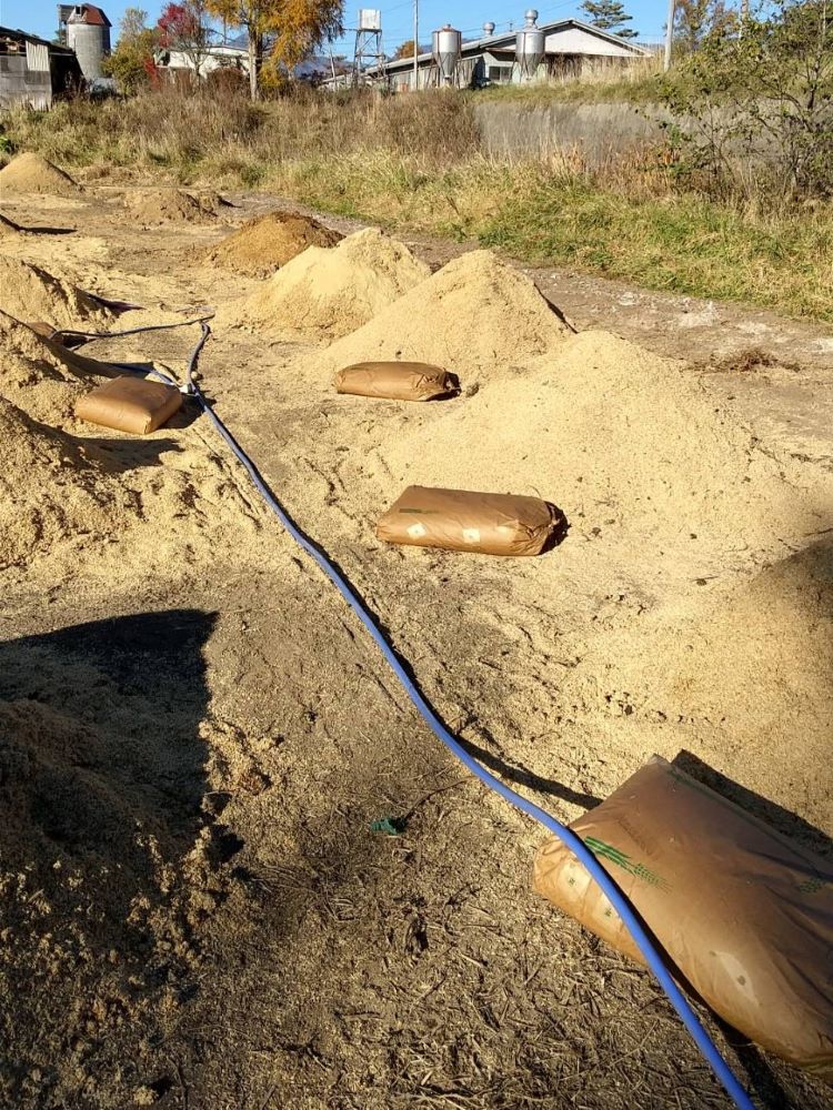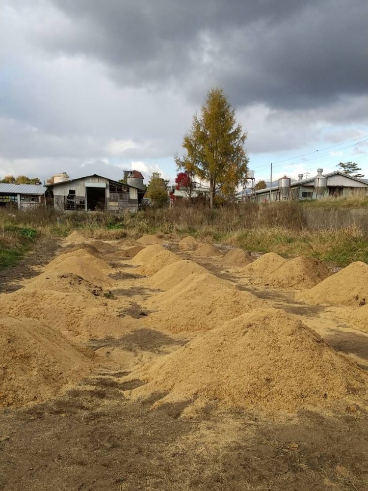 冬が訪れる前に堆肥を作り、発酵させ、畑全体に撒くことで、気温の低い冬の間も、土の中では発酵が続きます。体験学習の畑では、籾殻、米ぬか、酒粕、貝の殻、鶏糞を混ぜて、繰り返し、トラクターで土起こしを行いました。