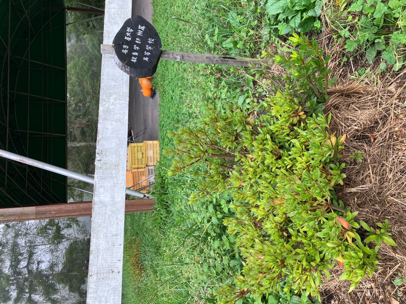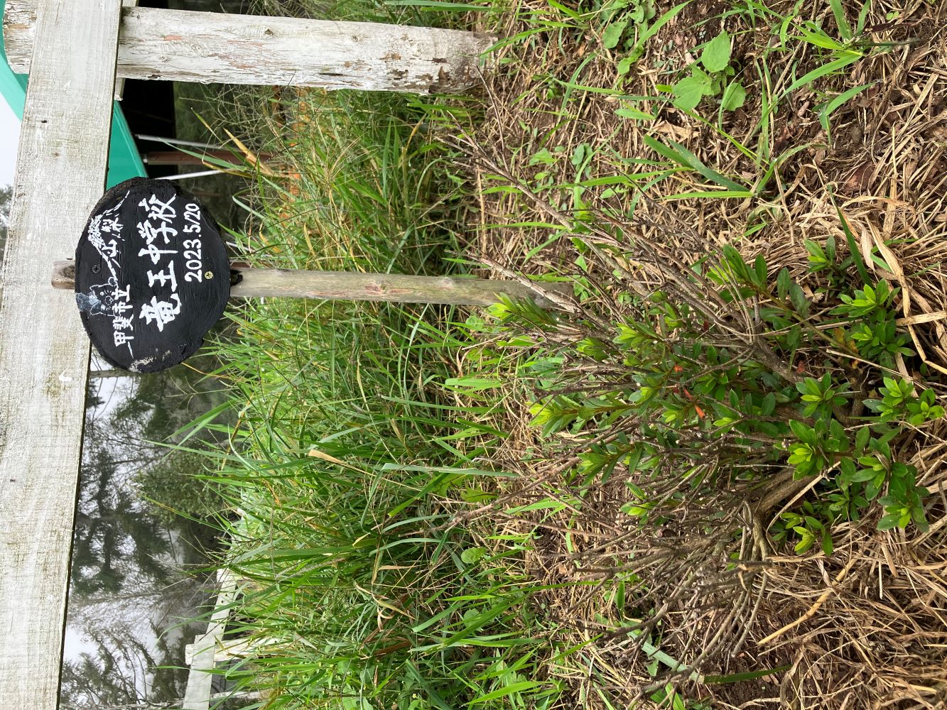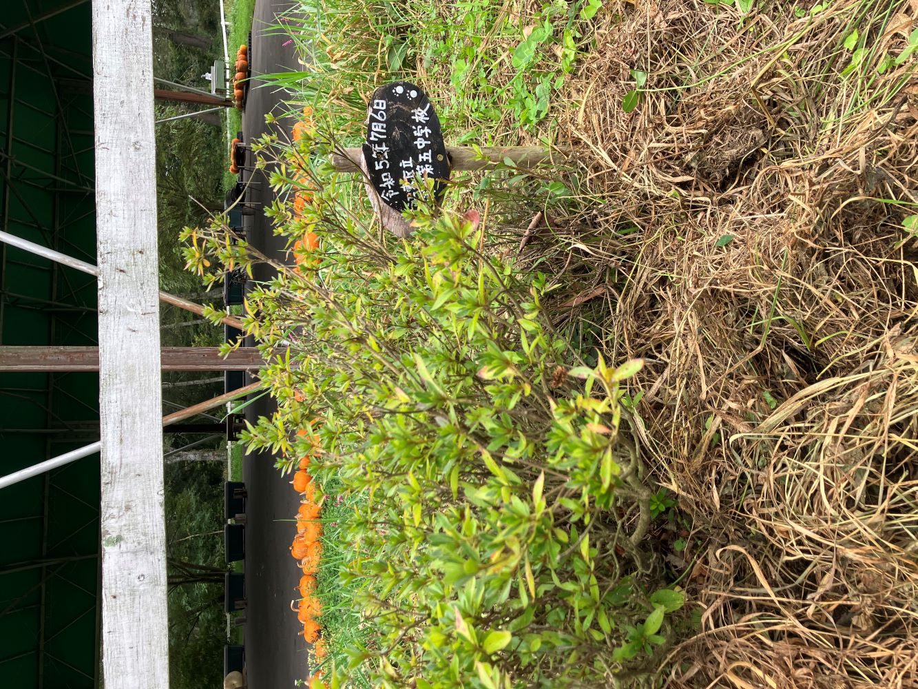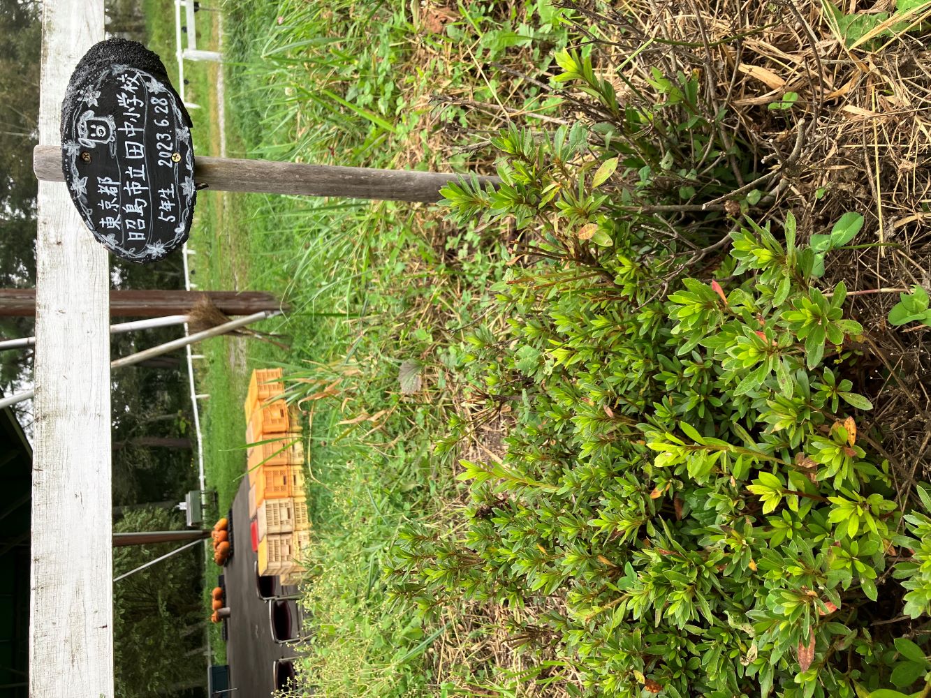 学校名を記したプレートも一年の時を経て、雨風雪にさらされ、割れ始めました。こちらも指導員によって修理がなされています。