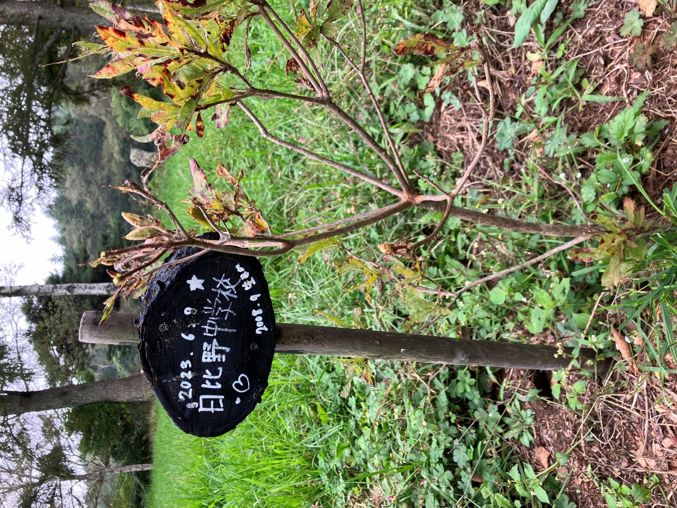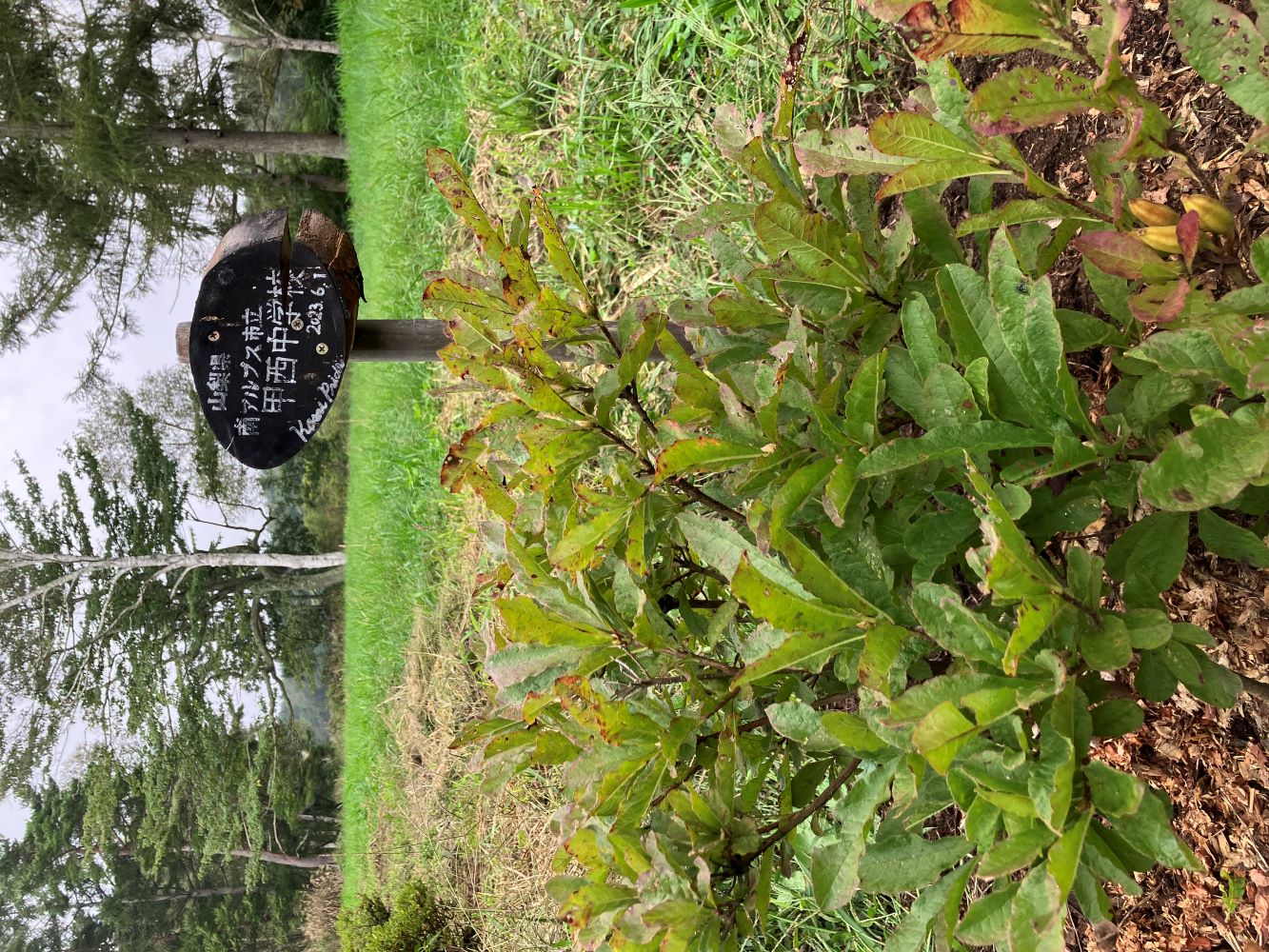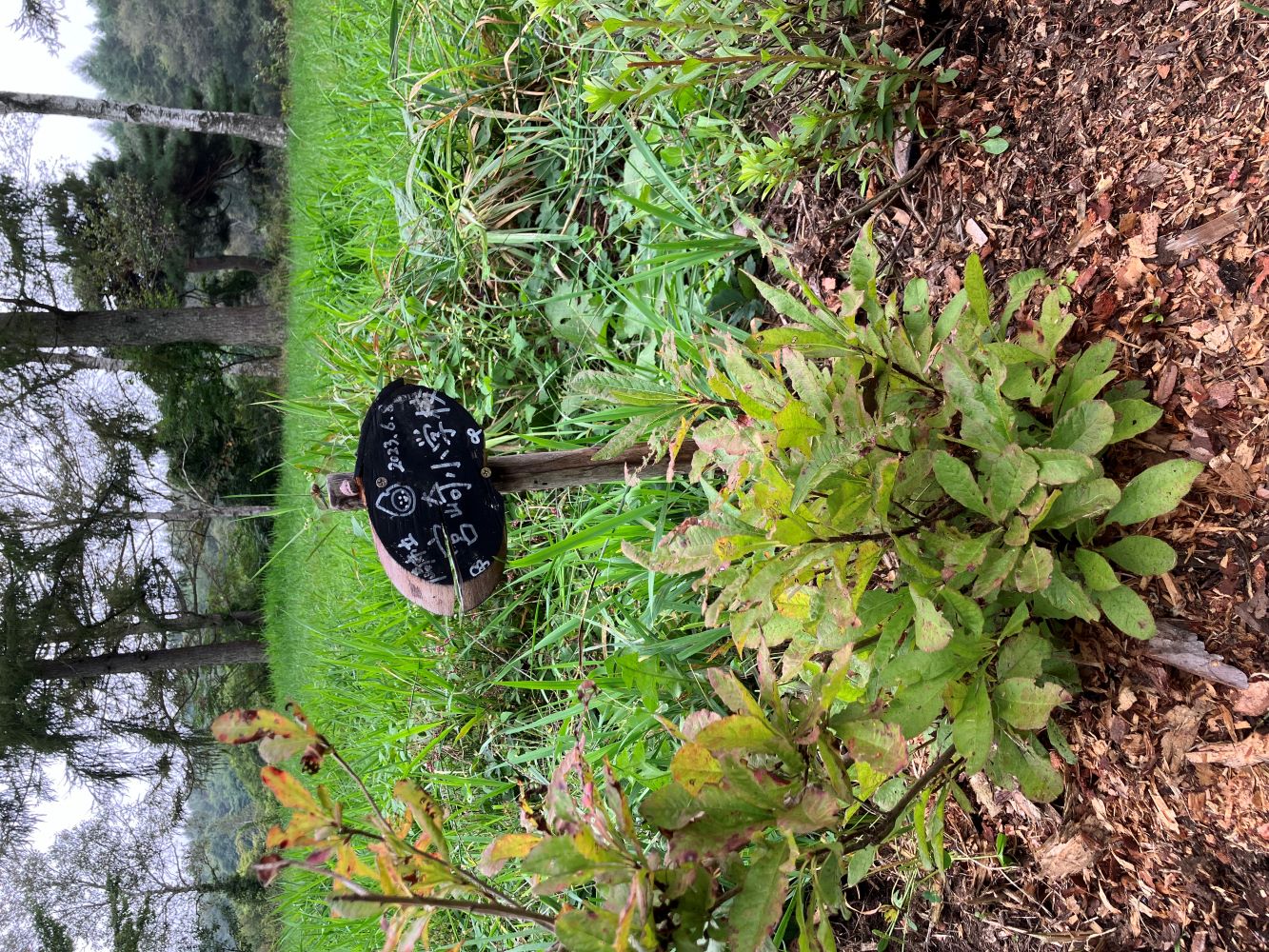 岡島指導員をはじめ、森づくりワークショップを担当する指導員で、食害の被害にあった樹々の隣に、新たに樹を植えました。こちらはしっかりと根付き、生き生きと育っています。