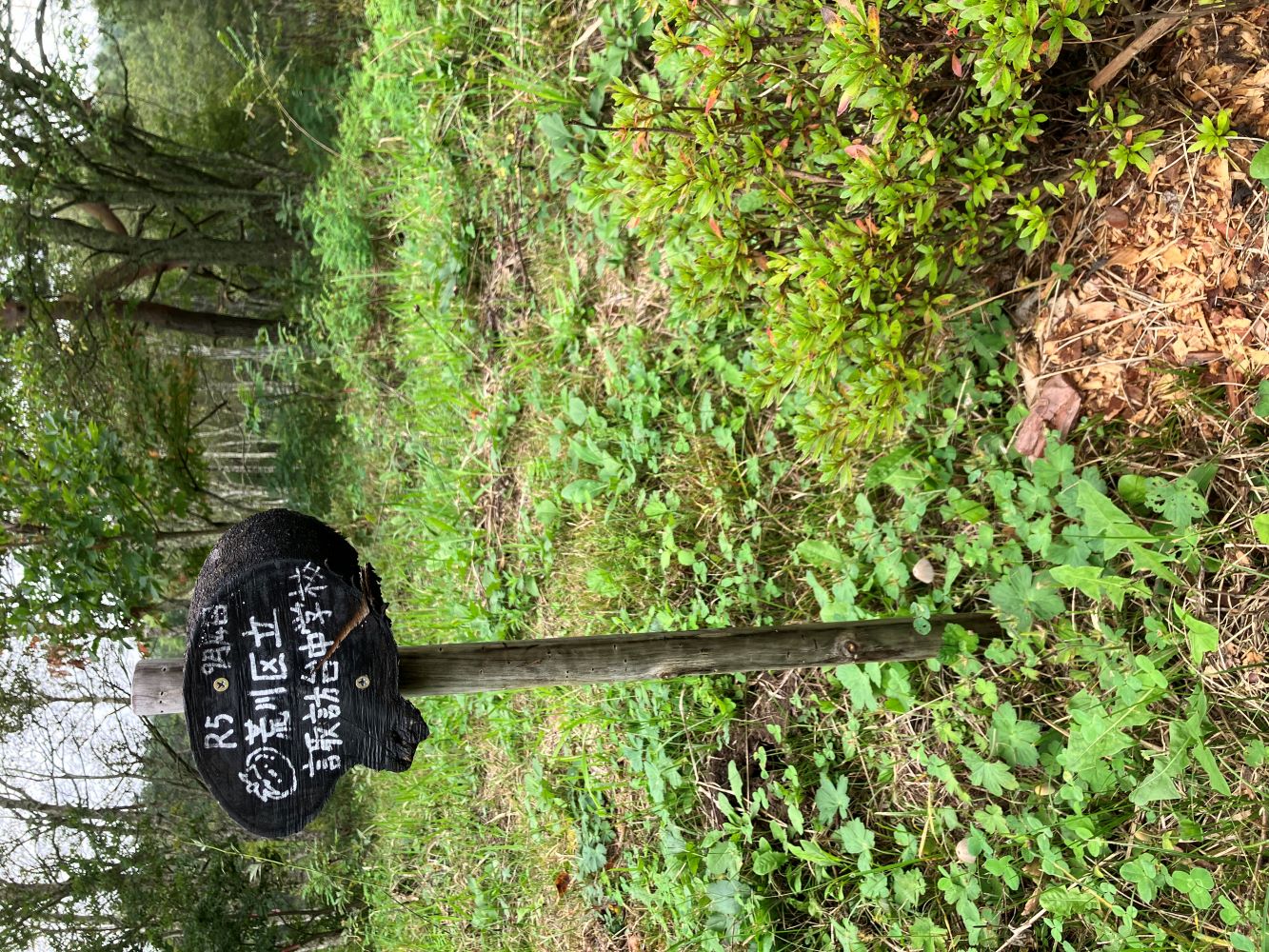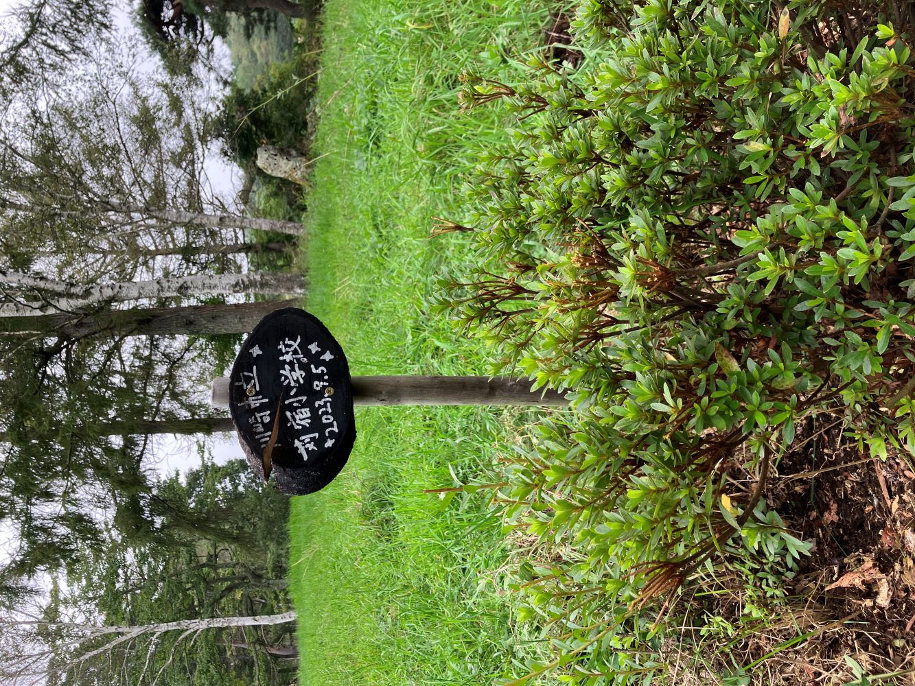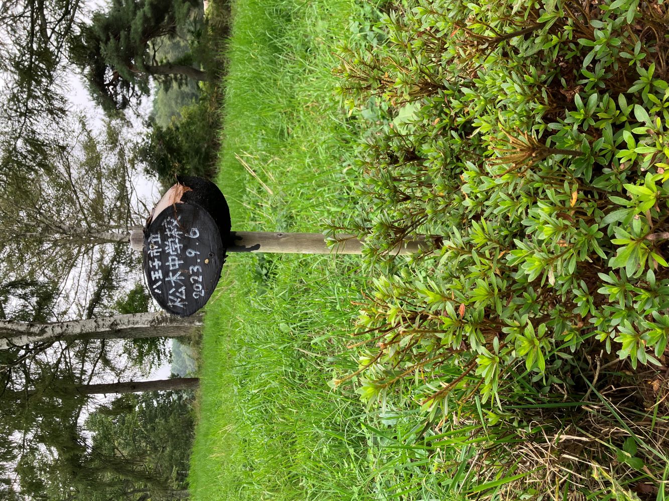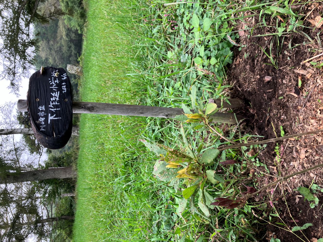 岡島指導員をはじめ、森づくりワークショップを担当する指導員で、食害の被害にあった樹々の隣に、新たに樹を植えました。こちらはしっかりと根付き、生き生きと育っています。